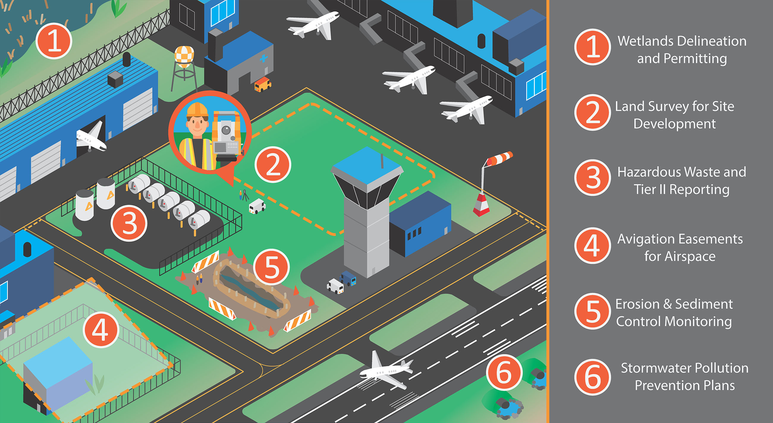 GM2 supports the growth and maintenance of airport infrastructure through the provision of environmental, site/civil, and survey services. Our team of industry experts is adept in FAA standards and recognizes the critical importance of maintaining airport services while throughout the design and construction process.